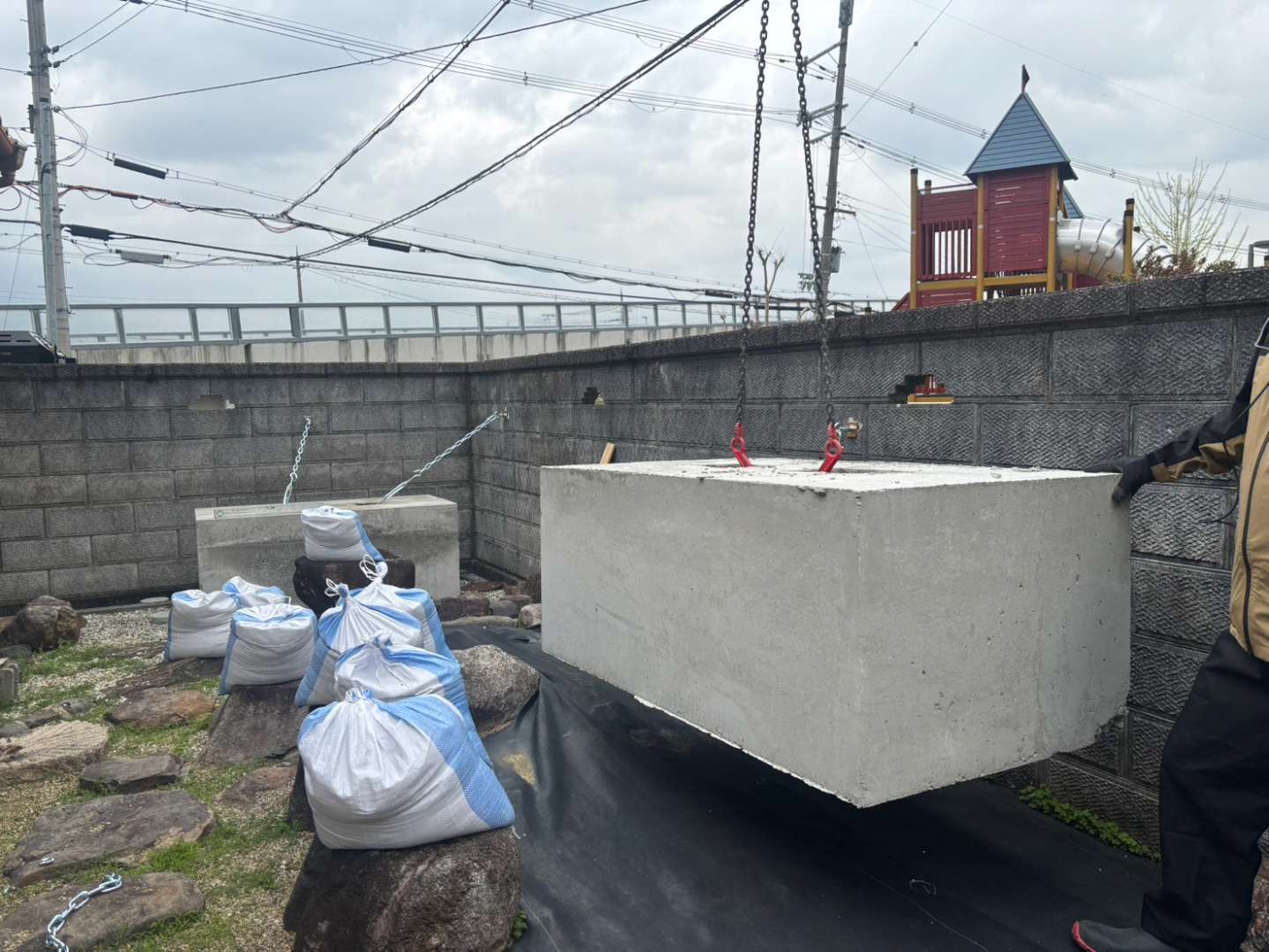 ・立米ブロック・鎖・ターンバックル等使用